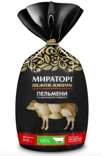 Мучной полуфабрикат с мясной начинкой в пакете с металлическим фиксатором. Для начинки используется мясо собственного производства компании. Содержимое представляет собой фарш из мраморных бычков Black Angus, репчатого лука и пряностей. Тесто изготовлено из муки твердых сортов пшеницы. Производитель советует варить пельмени с добавлением лаврового листа и перца горошком.