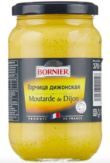 Лидер общественного мнения и спроса — французская горчица “Bornier” по доступной цене от 149 рублей за баночку объемом 370 г. Согласно отзывам покупателей, обладает высокими органолептическими свойствами, но при этом достаточно острая (что не свойственно классическому дижонскому соусу). Пусть это и не самый традиционный вариант из-за повышенной жгучести, однако он подходит ко множеству блюд, имеет безопасный состав и пользуется наибольшим успехом у покупателей. Принимая во внимание вышеупомянутые достоинства, данный продукт смело можно рекомендовать к покупке.