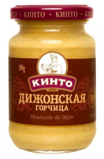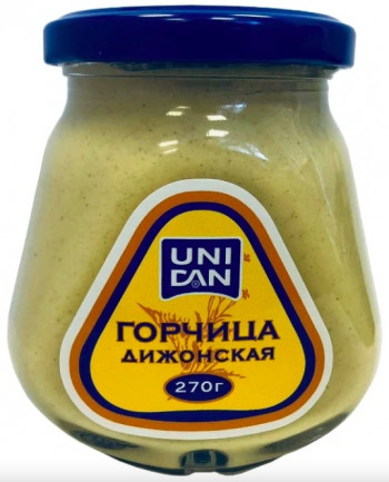 Французская горчица по-дижонски в стеклянной таре. Продукт обладает нежно-сливочной текстурой и умеренной степенью жгучести. Цвет соуса — насыщенный темно-желтый. Вкус характеризуется легкой кислинкой, аромат пряный, травяной.