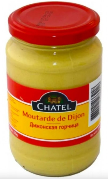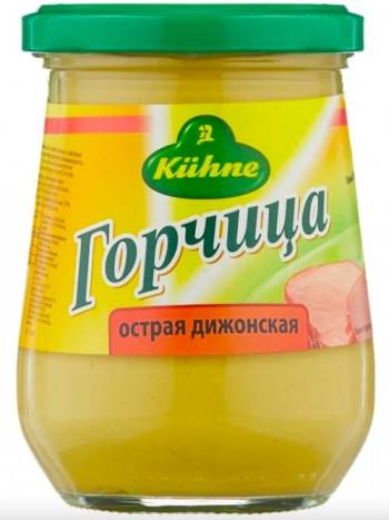 Горчица не имеет ничего общего с дижонской, обычная русская с довольно ядреным вкусом. Присутствует заметная кислинка, что не каждому понравится. К мясу подходит неплохо, но название вводит в заблуждение. Да и консервант в составе явно лишний.
