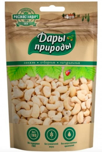 Орех кешью — удовольствие не из дешевых: продукт поставляется из Бразилии, Индии и Вьетнама, поэтому его стоимость в России столь высока. Образец под маркой “Дары Природы” имеет наиболее демократичный ценник — от 221 рубля за за пачку массой 150 г. К качеству продукта нет претензий: покупатели отмечают свежесть, отличные органолептические свойства и высокое качество самого ореха — без сколов, пятен и плесени.