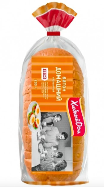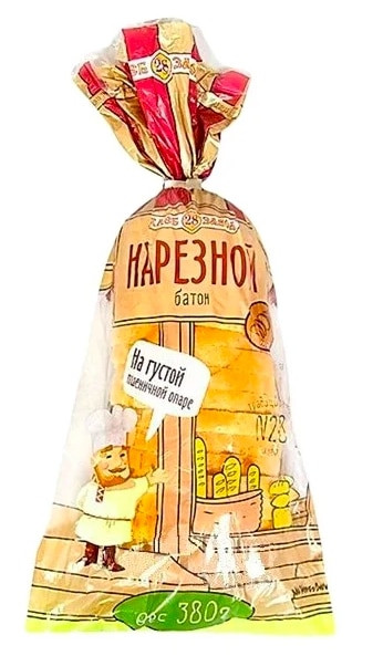 Хлебобулочное изделие на густой пшеничной опаре в полиэтиленовом пакете с застежкой-клипсой. Мякиш обладает пышной и мягкой текстурой, корочка плотная и подрумяненная. Батон хорошо держит форму, не сплющивается, нарезан аккуратными тонкими ломтиками одинакового размера.