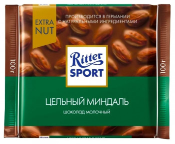Немецкий молочный шоколад с цельным миндалем из Калифорнии. Сочетание нежной шоколадной массы со сливочно-ванильными нотками и ароматного жареного ореха создают гармоничную вкусовую композицию. Цельные и хрустящие ядра миндаля обладают приятным ароматом и сбалансированным вкусом без горечи.