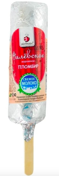 Классический ванильный пломбир в шоколадной глазури на палочке в полимерном пакете флоу-пак. Мороженое не содержит растительных жиров и красителей. Глазурь сладкая и хрустящая, плотно прилегает к сливочной массе тонким слоем и не крошится. Пломбир в меру жирный, характеризуется выраженным сливочным вкусом и воздушной текстурой.
