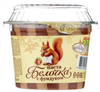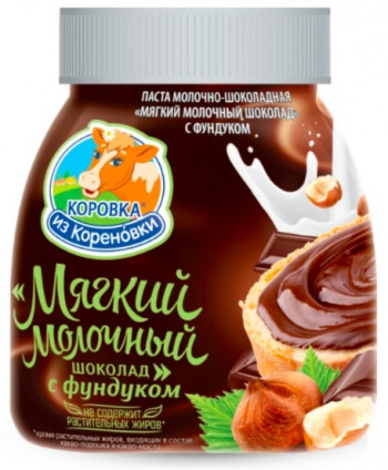 Шоколадно-молочная паста с лесным орехом в пластиковой банке. Лакомство изготовлено на основе натуральных молочных продуктов, сливочного масла, жареного фундука и какао. Обладает кремообразной тягучей консистенцией с глянцевой поверхностью, вкус насыщенный орехово-шоколадный со сливочными нотками.
